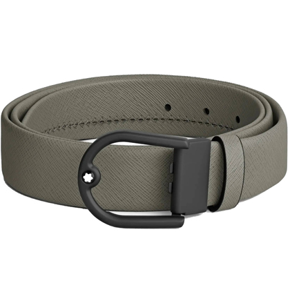 Кожаный ремень 35 мм из кожи серого цвета, пряжка в форме подковы от магазина премиальных ручек Premium Pens в Невинномысске.
