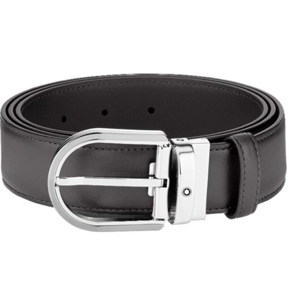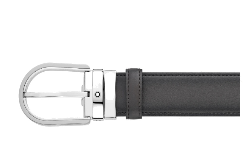 Кожаный ремень с пряжкой в форме подковы серого цвета 35 мм от магазина премиальных ручек Premium Pens в Невинномысске.